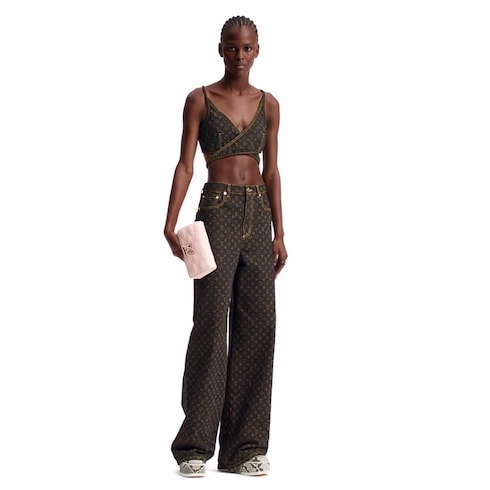 Diese unverzichtbare Jeans zeigt sich in der aktuellen Saison mit einer stilvollen, durchgängigen Signatur: Sie ist mit dem lasergedruckten Monogram-Motiv der Kollektion versehen, welches von den Reisekoffern in den Archiven des Hauses Louis Vuitton inspiriert ist. Sich farblich abhebende gelbe Absteppnähte zieren die Hose in einer zeitlosen, gerade geschnittenen Passform und betonen das strukturierte Vintage-Design. Dezente Hammerschlaufen an den Gesäßtasche verweisen auf den Utility-Stil.