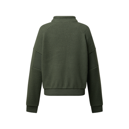 Legere Eleganz: Dieser von Loungewear inspirierte Blouson aus warmem, weichem Woll-Fleece in zeitlosen Oliv-Nuancen eignet sich perfekt für Reisen. Das sportive Kleidungsstück verfügt über einen hohen Kragen samt Zugband zum Verstellen. Raglanärmel mit gerippten Einsätzen an den Ellbogen sorgen für ein hohes Maß an Bewegungsfreiheit. Indes verleihen Absteppnähte und eine LV Stickerei auf der Brust dem Modell eine raffinierte Note. In Kombination mit der dazu passenden Hose entsteht ein angenehm wärmendes Set.
