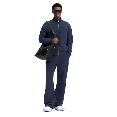 Bei dieser legeren Trainingshose ist der weiche Jersey aus Bio-Baumwolle gefertigt. Sie zeichnet sich durch elegante Signaturen im Monogram-Design mit einem geprägten Effekt auf den Taschen aus. Das Modell in einem zeitlosen Navyblau ist mit einem komfortablen Zugband am Taillenbund versehen und lässt sich mühelos in jeder Saison zu verschiedenen Looks kombinieren. Eine passende Trainingsjacke vervollständigt das stilvolle Set, welches sich perfekt für Reisen eignet.