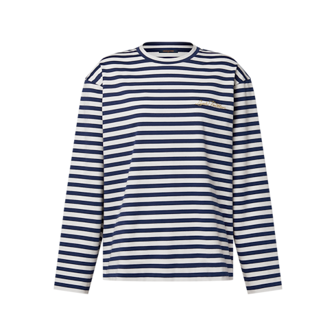 Bei diesem langärmeligen Top aus der Nautical Kollektion sorgen auffällige, waagerechte Streifen für ein zeitlos maritimes Flair. Das Modell aus weichem Baumwolljersey in einer weiten Passform sitzt angenehm und lässt sich leger kombinieren. Auf der Brust setzt eine dezente Louis Vuitton Signatur in Schreibschrift als sich abhebende Stickerei einen eleganten Akzent des Hauses Louis Vuitton.