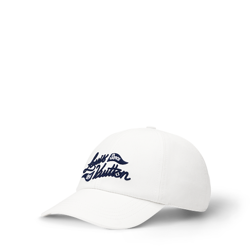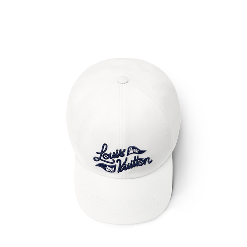 Die strahlend weiße Golfmütze verleiht einem Tag auf dem Grün einen neuen Look. Der charakteristische Schriftzug „Louis Vuitton Since 1854“ ist in eleganter Schreibschrift neben dreieckigen Golfflaggen auf dem vorderen Paneel in einem intensiven Blau eingestickt. Der Riemen auf der Rückseite ist mit einer quadratischen Schließe mit LOUIS VUITTON-Gravur versehen – für individuell anpassbaren Komfort und Eleganz.