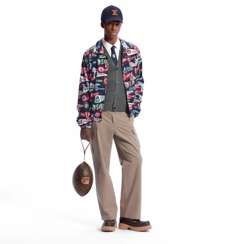 Diese grafische Windjacke aus einem wasserabweisenden, technischen Gewebe ziert ein aufgedrucktes LV Club Flags-Motiv, welches von Sportmannschaften an Universitäten inspiriert ist. Flatternde Wimpel auf einem navyblauen Hintergrund sind mit Signaturen des Hauses Louis Vuitton in leuchtenden, charakteristischen Farben versehen. Das Innenfutter mit einem Monogram-Motiv rundet dieses sportive Modell mit Reißverschluss ab, bei dem die Taille und die Bündchen elastisch sind.
