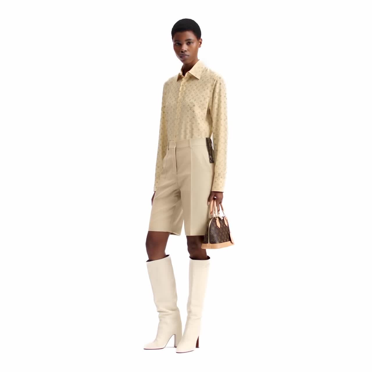 Dieses stilvolle, sommerliche Hemd aus weichem, fließend fallendem Seiden-Krepp verfügt über eine vielseitige gerade Passform. Der Entwurf präsentiert sich in einem stilvollen saisonalen Farbton und ist durchgängig mit einer verträumten, verwaschenen Version des ikonischen Monogram-Motivs bedruckt. Elegante Knöpfe mit Perlmutt-Finish gewährleisten einen sicheren Sitz.