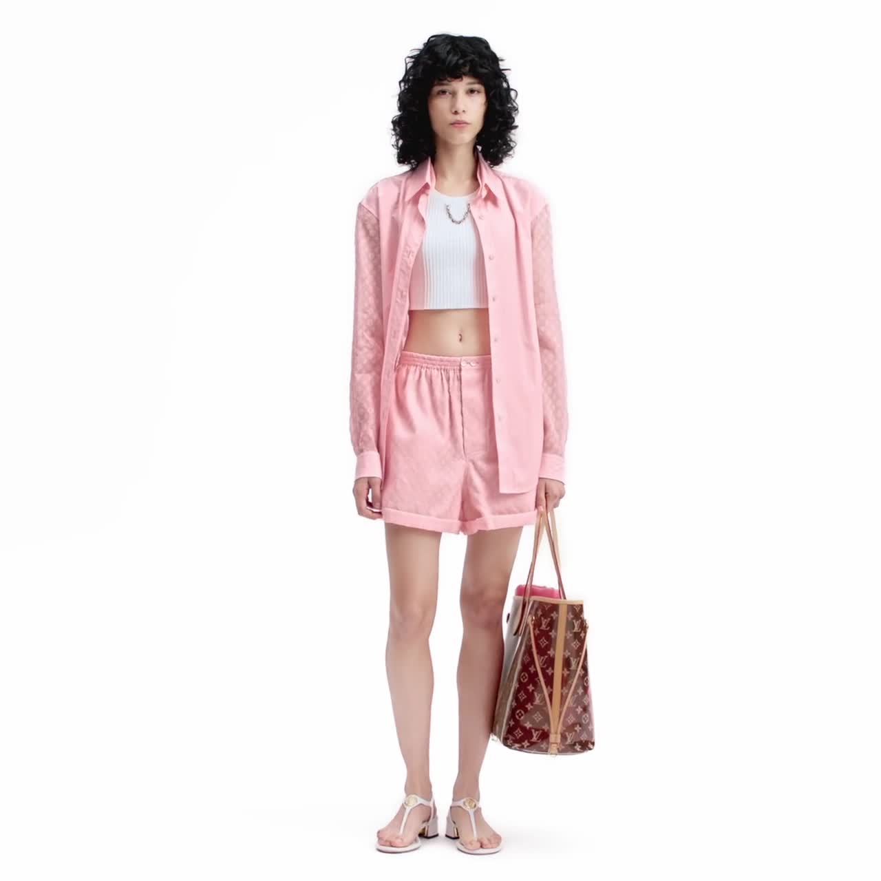 Zarte Details verleihen diesem klassischen geknöpften Hemd eine sommerliche Signatur. Es präsentiert sich mit einer regulären Passform aus einem eleganten Baumwoll-Seidengemisch, von dem sich die Ärmel aus einem transparenten Fil Coupé mit Monogram-Motiv auffallend abheben. Knöpfe aus Perlmutt erlauben das Abnehmen des Kragens, was für eine modisch schlichte Silhouette sorgt. Gestickte ikonische LV Initialen runden dieses Modell mit einem dezenten Akzent an der Brust ab.