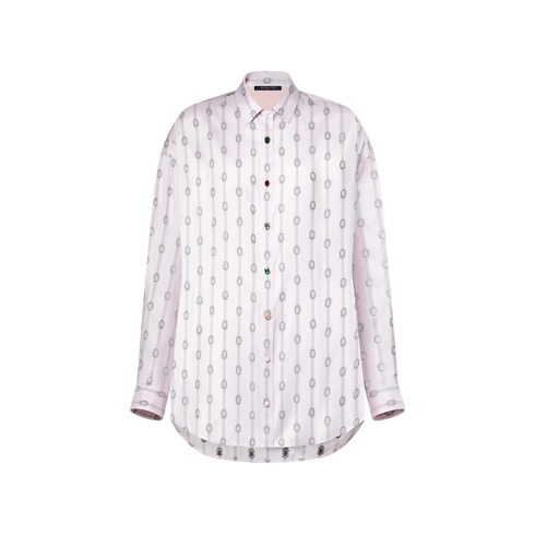 Dieses Hemd aus fließender Seide setzt mit einem durchgängigen Streifen-Motiv, welches mit grafischen juwelenartigen Akzenten versehen ist, darunter verspielte, unterschiedliche Knöpfe auf der Vorderseite, ein elegantes Statement. Das Modell präsentiert sich mit einer luftigen, oversized geschnittenen Passform und einem Kragen und geknöpften Manschetten für zeitlose Noten der Maßkonfektion.
