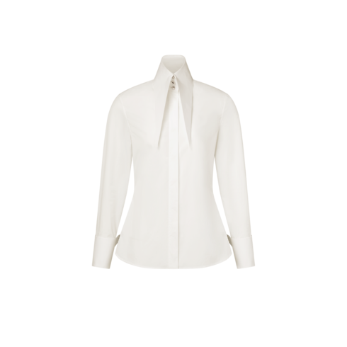 Ein Spiel mit Proportionen interpretiert dieses Hemd mit einer dramatischen Note neu. Das Modell aus Baumwoll-Popeline in einer figurbetonten Passform besitzt einen eleganten, verdeckten Verschluss auf der Vorderseite. Der betonte, spitze Kragen akzentuiert das hochgeschlossene Design. Übergroße Manschetten setzen ein Statement. LV Cube Knöpfe aus Metall runden den modischen, grafischen Look ab.
