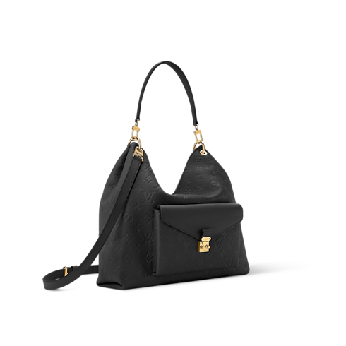 Diese Métis Beuteltasche in dem charakteristischen Monogram Empreinte Leder des Hauses Louis Vuitton ist eine zeitlose Wahl, die saisonale Trends überdauert. Die Tasche präsentiert sich in einer klassischen Farbgebung, die sich harmonisch zu den meisten Outfits kombinieren lässt. Sie ist mit eleganten, goldfarbenen Beschlägen wie einem ikonischen S-Schloss auf dem vorderen Fach versehen. Die geräumige Handtasche bietet Platz, um alles Wesentliche für jeden Tag zu verstauen, einschließlich eines Notizbuchs und E-Readers. Ihr abnehmbarer Griff erlaubt vielseitige Tragemöglichkeiten.