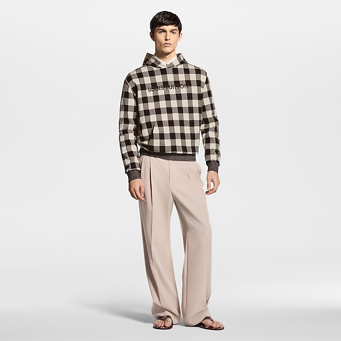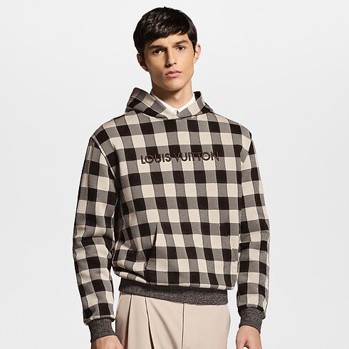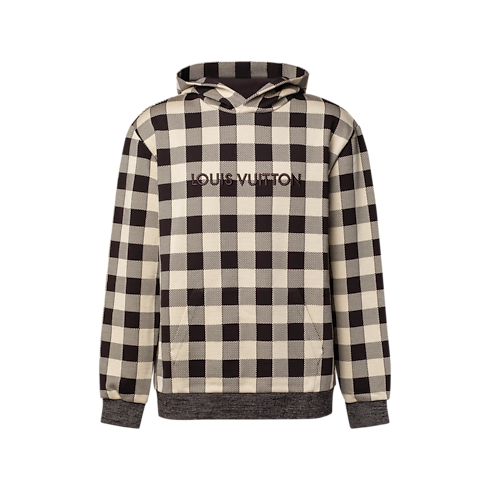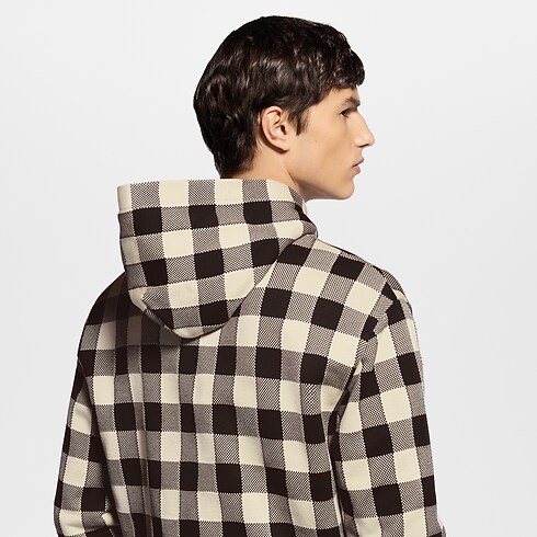 Eine verspielte Interpretation des ikonischen Damier-Motivs: Dieser Damier Picnic Hoodie präsentiert sich im grafischen Stil für das Frühjahr. Das Jacquard-Vichy-Karo in tiefem Braun und zartem Vanillegelb wird durch einen glänzend gestickten Louis Vuitton Schriftzug mit 3D-Effekt auf der Brust veredelt. Das sowohl nostalgisch als auch modische Modell setzt einen auffallenden Akzent bei einem legeren Look.