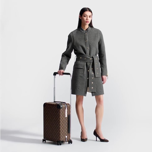 Makassar-Ebenholz mit seinen haselnussbraunen und schwarzen Streifen inspirierte Nicolas Ghesquière zu diesem Horizon 55 Hartschalenkoffer für Herren: Bei dem Entwurf trifft Monogram Canvas auf mattschwarzes Leder und Beschläge aus glänzendem Aluminium. Dieser leichte Koffer mit vier Rollen ist klein genug für das Handgepäck. Jedoch eröffnet der außen angebrachte Rahmen für den Griff im Inneren überraschend viel Platz.