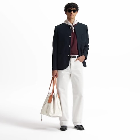 Diese Hose im Skater-Stil präsentiert sich aus hochwertigem japanischem Denim. Die legere Silhouette und das zeitlose Weiß vervollständigen Looks für den Sommer perfekt. Zu den exklusiven Details zählen Absteppnähte in sich farblich abhebendem Off-White, eine aufgestickte LV Signatur an der Gesäßtasche sowie Patches aus Nubukleder an der Tickettasche und an der Taille. Ein unverzichtbares Modell, in dem sich das Savoir Faire des Hauses Louis Vuitton widerspiegelt.