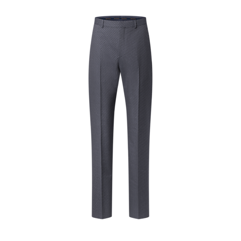 Diese stilvolle Hose aus einem Woll-Baumwoll- Seidengemisch zeichnet sich durch einen ausgesprochen leichten, atmungsaktiven Tragekomfort aus und ist die ideale Wahl für wärmere Tage. Auf dem navyblauen Gewebe bildet das das LV Interlocked-Motiv als Jacquard eine grafische Signatur. Ein passendes einreihiges Jackett vervollständigt diesen eleganten Anzug für geschäftliche Anlässe.