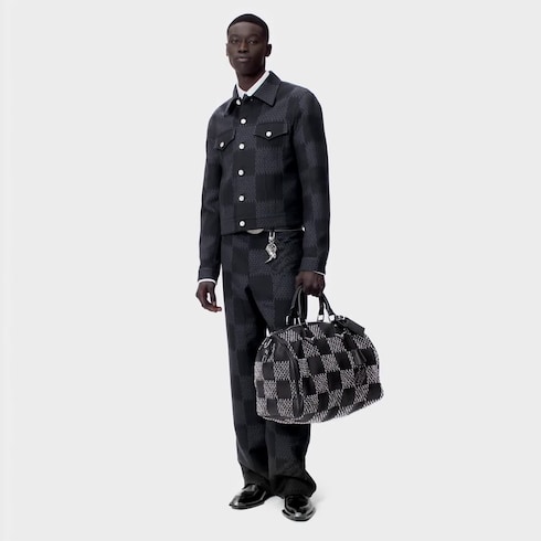 Diese Jacke aus feiner Wolle bringt eine stilvolle Note in Workwear-Looks im Denim-Stil. Das große Damier-Motiv als Jacquardgewebe wird durch ein feines Samenkorn-Muster in Navy-Tönen akzentuiert. Auf der Rückseite sind „Marque L. Vuitton Déposée“ Signaturen eingebettet. Knöpfe mit Perlmutt-Effekt runden dieses modische Kleidungsstück ab, welches sich zu einer passenden Hose kombinieren lässt.