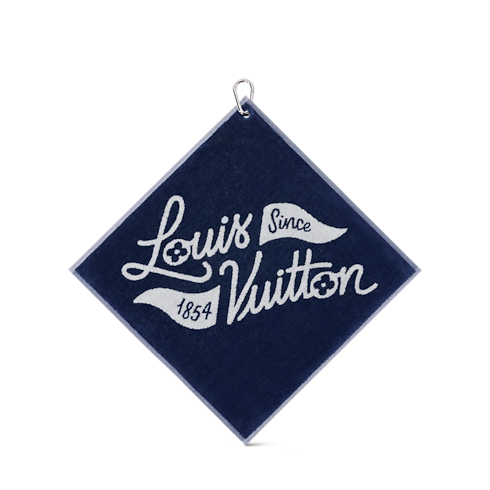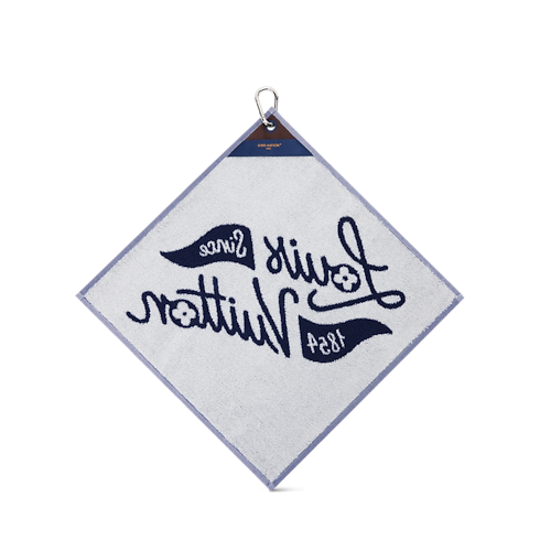 Das Golf Handtuch verleiht dem Fairway eine anspruchsvolle Note. Das Design in Marineblau präsentiert die Signatur „Louis Vuitton Since 1854“ sowie eine kunstvolle Flaggenstickerei. Mit dem silberfarbenen Haken lässt es sich stilvoll an der Tasche oder einer Gürtelschlaufe befestigen und ist so stets griffbereit für das Reinigen der Golfschläger.