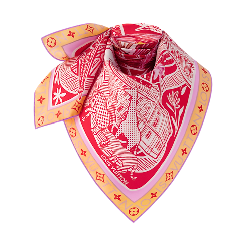 Das aus reiner Seide gefertigte und nach dem historischen botanischen Garten in Paris benannte Jardin Des Plantes Carré widmet der Pracht der Natur eine elegante Hommage. Herzstück seines aufwendigen Designs ist ein majestätischer Baum, der in einem Louis Vuitton Koffer wurzelt und sowohl von blühenden Blumen als auch Illustrationen Pariser Sehenswürdigkeiten umgeben ist. Ein exquisites Accessoire, das jedem Look eine romantische, bezaubernde Note verleiht.