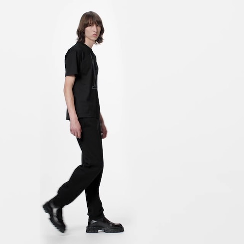 Diese sportive Hose aus gebürstetem Baumwoll-Felpa präsentiert sich in einer der ikonischen Farben der Saison. Einen Kontrast setzen sich farblich abhebende, weiße Schnüre an der Taille und eine weiße Louis Vuitton Signatur als Stickerei oberhalb der vorderen Hosentasche. Eine passende Klammer vervollständigt das Design.