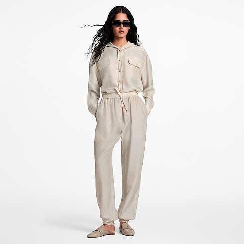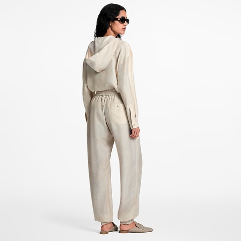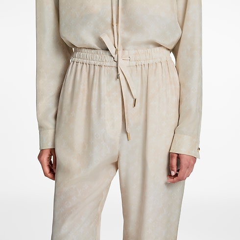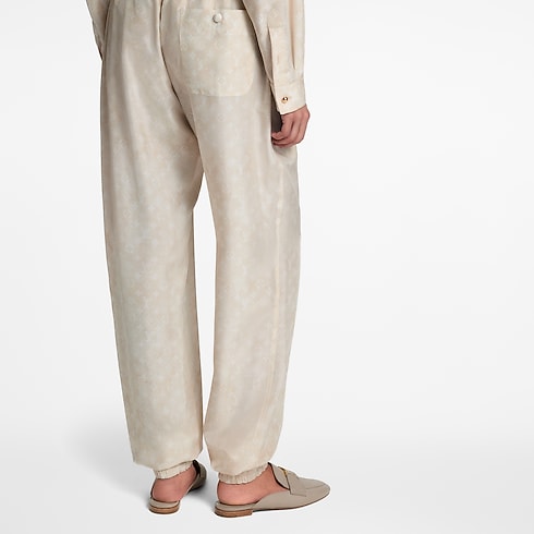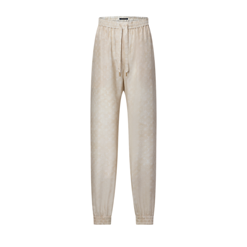 Diese sportive Jogginghose erhält durch fließende Seide mit einem dezenten, durchgängigen, verträumten Monogram-Motiv eine elegante Note. Die legere Silhouette mit gerade geschnittenen Beinen ist für eine optimale Passform an Bund und Knöcheln elastisch, während lockere Zugbänder den entspannten Stil betonen. Abgerundet wird das Design durch eine aufgesetzte Tasche mit Knopf auf der Rückseite.