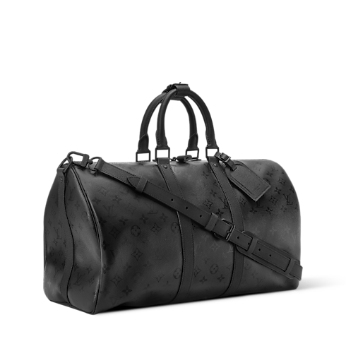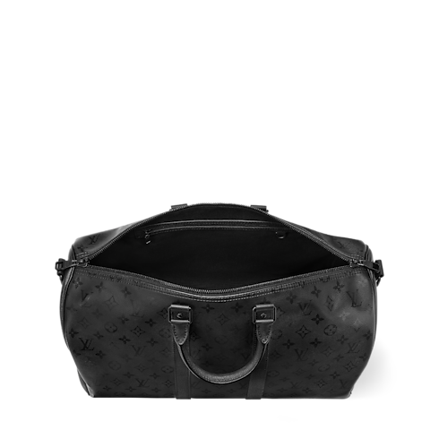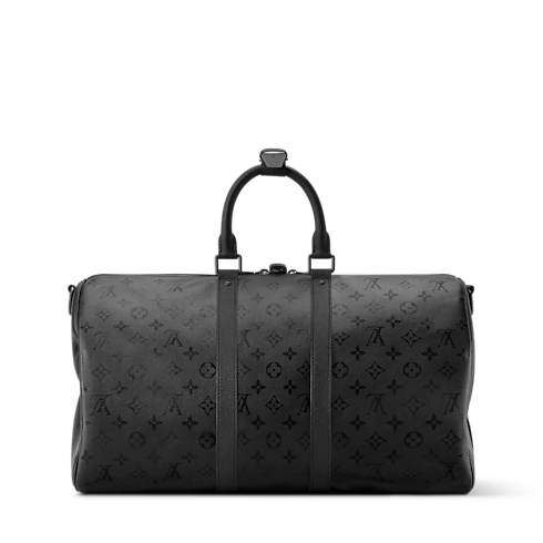 Diese Keepall 45 mit Schulterriemen zeigt sich in elegantem, Ton in Ton gehaltenem Monogram Midnight Canvas mit einer dezenten Monogram-Signatur. Matt schwarze Beschläge und fein genarbter schwarzer Besatz sowie Tragegriffe aus Rindsleder vervollständigen den einfarbigen Look. Dank eines abnehmbaren, verstellbaren Schulterriemens und doppelter Griffe an der Oberseite ist diese Reisetasche sowohl stilvoll als auch mühelos tragbar.