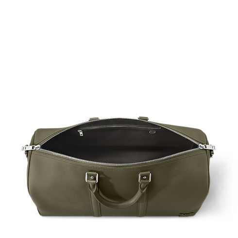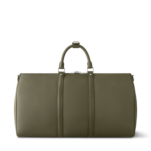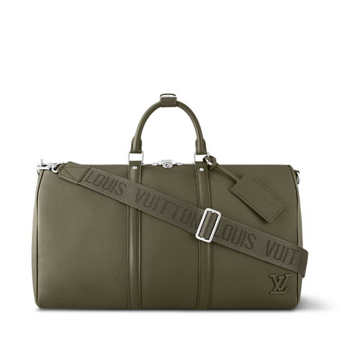 Diese Interpretation der ikonischen Keepall ist in LV Aerogram Leder gearbeitet – einem außergewöhnlichen Material und einer Hommage an die Expertise des Hauses Louis Vuitton in der Lederhandwerkskunst. An dem ausgesprochen geschmeidigen Rindsleder in elegantem Khakigrün zeigen sich unverkennbare Details, die von dem Erbe des Reisens inspiriert sind. Dazu zählen ein Adressanhänger aus Leder und ein in der Jacquard-Technik gewebter Schulterriemen mit Louis Vuitton Signatur. Dank der perfekten Größe für kurze Ausflüge und das Handgepäck besticht diese Reisetasche zudem durch ihre Funktionalität.