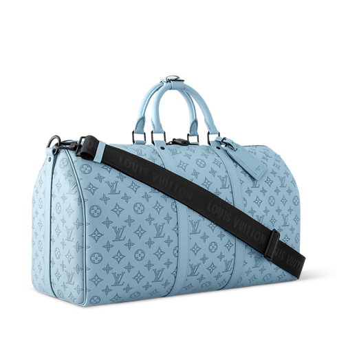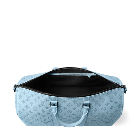 Bei dieser eleganten Interpretation der Keepall 50 mit Schulterriemen akzentuieren schwarze Beschläge das Kalbsleder mit dem Monogram Shadow-Motiv als Prägung. Diese besonders beliebte Reisetasche aus dem Haus Louis Vuitton präsentiert sich mit zwei rollierten Griffen aus Leder an der Oberseite sowie einem abnehmbaren und verstellbaren Schulterriemen. Diese Kombination eröffnet verschiedene Tragemöglichkeiten. Im geräumigen, mit Textil gefütterten Inneren befindet sich ein Reißverschlussfach.