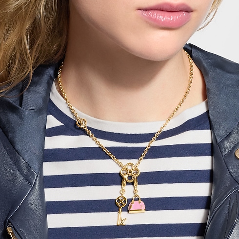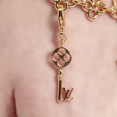 Der Key LV Anhänger aus goldfarbenem Metall ist eine Hommage an das Erbe des Hauses Louis Vuitton mit verspieltem, zeitgemäßem Akzent. Das extravagante Design präsentiert einen Schlüssel im Vintage-Stil, der eine Monogram-Blüte und die ikonischen LV Initialen integriert. Ob einzeln getragen oder kombiniert mit weiteren Kreationen aus der LV Charms Kollektion – der Anhänger eignet sich perfekt, um eine Handtasche, ein Armband, eine Halskette oder jedes sonstige Accessoire zu personalisieren.