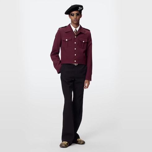 Diese essenzielle schwarze Hose im Maßkonfektions-Stil aus der Frühjahr Sommer 2024 Fashion Show präsentiert sich aus Woll-Twill mit einer eleganten ausgestellten Passform. Die fließende Silhouette des Kleidungsstücks lässt sich vielseitig mit anderen Kreationen aus der Kollektion kombinieren. Mit dem passenden, zweireihigen Jackett entsteht ein raffinierter Anzug.