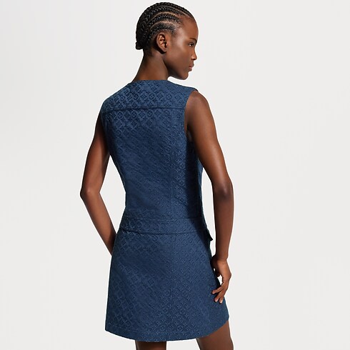 Dieses elegante, strukturierte Kleid aus Baumwollgabardine präsentiert sich mit einem durchgehenden, Ton in Ton gehaltenen Monogram-Jacquard. Das figurbetonte Oberteil bildet einen Kontrast zum ausgestellten Rock in einer femininen Silhouette. Die goldfarbenen, gewölbten Ankerknöpfe dieser Saison sorgen für eine raffinierte, maritime Note an der Knopfleiste auf der Vorderseite und an den beiden Pattentaschen an der Hüfte.