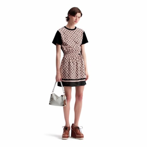 Dieses T-Shirt-Kleid aus fließendem Baumwolljersey zeigt sich leger und bietet angenehmen Tragekomfort. Die Vorderseite ist aus Seide gefertigt und präsentiert sich mit dem ikonischen Monogram-Motiv in einem der romantischen Farbtöne der Saison. Im Kontrast dazu kreieren die kurzen Ärmel, der Rundhalsausschnitt und der Saum, welche sich farblich abheben, ein sportives Flair. Das Zugband zur individuellen Anpassung der Taille unterstreicht diese Optik.