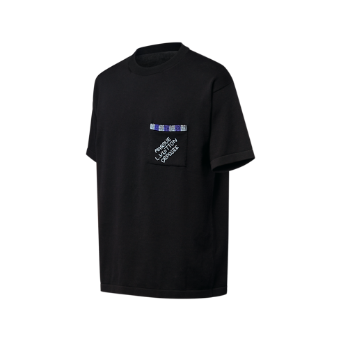 Aufgestickte Perlen in sich farblich abhebenden Blautönen setzen bei diesem eleganten, schwarzen Kurzarm-Pullover edle Akzente. Er präsentiert sich mit einer aufgesetzten Tasche an der Brust, die von einem Besatz mit Damier-Motiv am oberen Rand und einer „Marque L. Vuitton Déposée“ Signatur verziert wird. Dieses Modell rundet legere Looks für jeden Tag stilvoll ab.