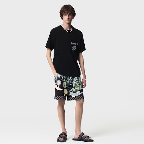 Aufgestickte Perlen in sich farblich abhebenden Blautönen setzen bei diesem eleganten, schwarzen Kurzarm-Pullover edle Akzente. Er präsentiert sich mit einer aufgesetzten Tasche an der Brust, die von einem Besatz mit Damier-Motiv am oberen Rand und einer „Marque L. Vuitton Déposée“ Signatur verziert wird. Dieses Modell rundet legere Looks für jeden Tag stilvoll ab.