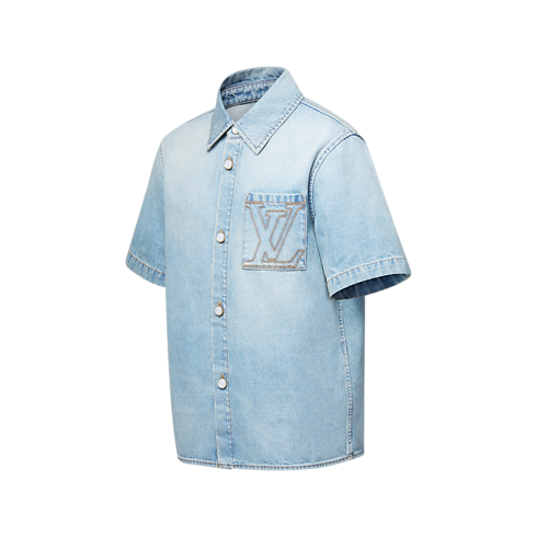 Dieses kurzärmelige Jeanshemd ist unverzichtbar in jeder Garderobe und wurde mit dem unverkennbaren Savoir Faire des Hauses Louis Vuitton vollendet. Hochwertiger, japanischer Stonewashed-Denim wird durch tabakfarbene Absteppnähte, eine gestickte LV Signatur auf der Brusttasche, einen Patch aus Nubukleder samt LV Signatur auf der Rückseite sowie Knöpfe mit Perlmutt-Finish vervollständigt. Dieses mühelose Kleidungsstück lässt sich leicht zu alltäglichen Looks kombinieren.