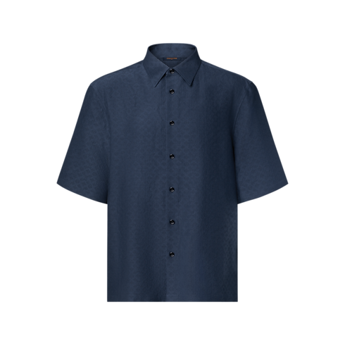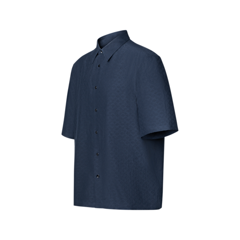 Dieses Hemd aus Seide und Baumwolle in dunklem Navyblau ist unverzichtbar in jeder Garderobe für den Sommer. Die luftige Silhouette mit offenem Kragen hebt sich durch ein strukturiertes Seersucker-Gewebe hervor, das ein geprägtes, durchgängiges Mini Monogram-Motiv mit sanftem Schimmer präsentiert. Dieses mühelos elegante Modell lässt sich vielseitig kombinieren und verleiht Tages- wie Abendlooks eine Signatur.