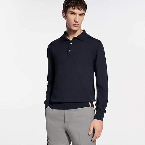 Langarm-Polohemd aus Wolle und Seide