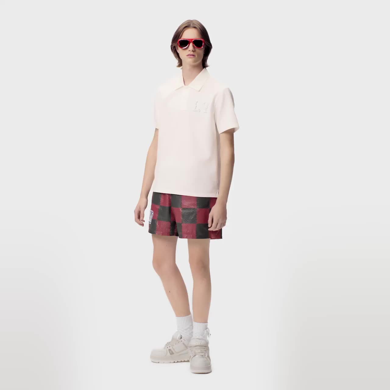 Dieses auffällige, im Rugby-Stil entworfene Hemd aus Leder erfindet die Attribute der Herrenkollektion im Rahmen der Frühjahr Sommer 2024 Fashion Show neu, indem es exklusives Savoir Faire in die Welt des Sports bringt. Das oversized geschnittene Modell aus butterweichem Lammleder schmücken horizontale Intarsienstreifen, die dank bestickter Aufnäher mit Louis Vuitton Signaturen ins Auge fallen. Für einen raffinierten Look kann dieses grafische Design mit Shorts aus Leder kombiniert werden.
