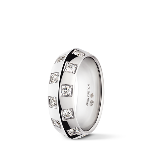 Der grafische, geschlechtsneutrale Look des Le Damier de Louis Vuitton Rings macht ihn zu einer einzigartigen Kombination aus zeitgemäßer Handwerkskunst und klassischem Erbe. Das detailgenau gefertigte Modell aus handpoliertem 18-karätigem Weißgold ist mit strahlenden Diamanten besetzt und verweist auf das ikonische Damier-Motiv des Hauses Louis Vuitton, welches 1888 von Louis und Georges-Louis Vuitton als zeitloses Symbol der Unendlichkeit kreiert wurde. Dieser außergewöhnliche Ring wurde entworfen, um mit anderen Juwelen sowie jeden Tag getragen und nie abgelegt zu werden - fast wie eine zweite Haut.