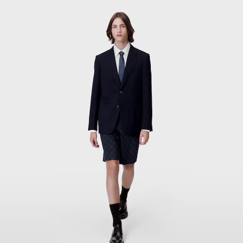 Dieser Twill-Blazer aus einem Wollgemisch ist vom angelsächsischen Lifestyle inspiriert und bringt eine entspannte Note in formelle Outfits. Das zeitlose Modell in einem eleganten Navyblau zieren dezente Knöpfe aus Metall mit LV Signaturen und Monogram-Blüten. Kombiniert zu einer angenehmen Hose mit einem Zugband bildet das vielseitige Kleidungsstück einen mühelos modischen Anzug.