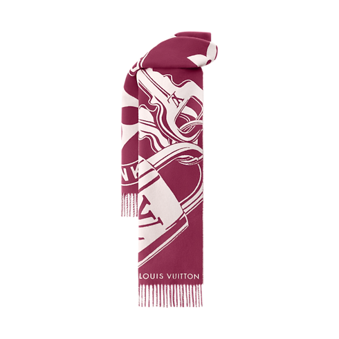 Das faszinierende Design des Lock And Keys Schals ist eine kreative Hommage an das Erbe des Hauses Louis Vuitton als Gepäckhersteller. Das Modell aus weichem, doppellagigem Woll-Kaschmirgemisch ist auf der einen Seite mit einem LV Hängeschloss-Motiv samt zwei Schlüsseln und auf der anderen Seite mit einem Louis Vuitton Medaillon samt Koffer-Design verziert. Ein warmer und stilvoller Winterschal mit einem auffälligen und charakteristischen Look.