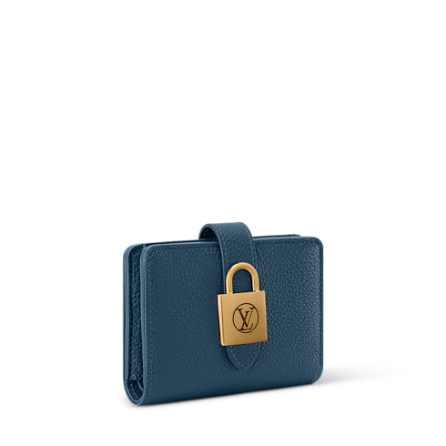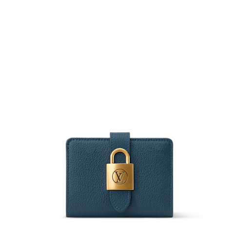 Die Low Key Kollektion interpretiert die klassische Compact Geldbörse in einer eleganten Preußischblau-Nuance neu. Dieses ebenso zeitlose wie schlichte Accessoire aus Kalbsleder mit einem Innenfutter aus glattem Kalbsleder würdigt die traditionsreiche Handwerkskunst des Hauses Louis Vuitton. Es zeichnet sich durch ein elegantes, patiniertes Hängeschloss samt einer LV Gravur sowie mehrere Innenfächer für Karten, Münzen und Geldscheine aus.