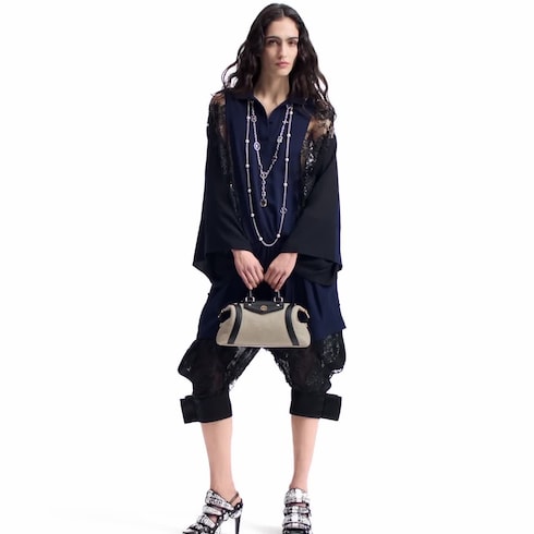 Die auf dem Laufsteg der Frühjahr Sommer 2025 Fashion Show vorgestellte zweifarbige LV Biker PM Handtasche ist eine Hommage an die klassische Bikerjacke. Sie präsentiert sich aus dem pixelartig genarbten Kalbsleder des Hauses Louis Vuitton von dem sich goldfarbene Beschläge sowie Besätze aus schwarzem Leder farblich abheben. Die Silhouette dieser wandelbaren Handtasche lässt sich mit den verstellbaren Riemen an den Seiten erweitern. Ihr Innenfach bietet einen sicheren Aufbewahrungsort für Wertgegenstände. Mit dem angenehmen Riemen aus Leder kann dieses Modell über der Schulter oder diagonal am Körper getragen werden.