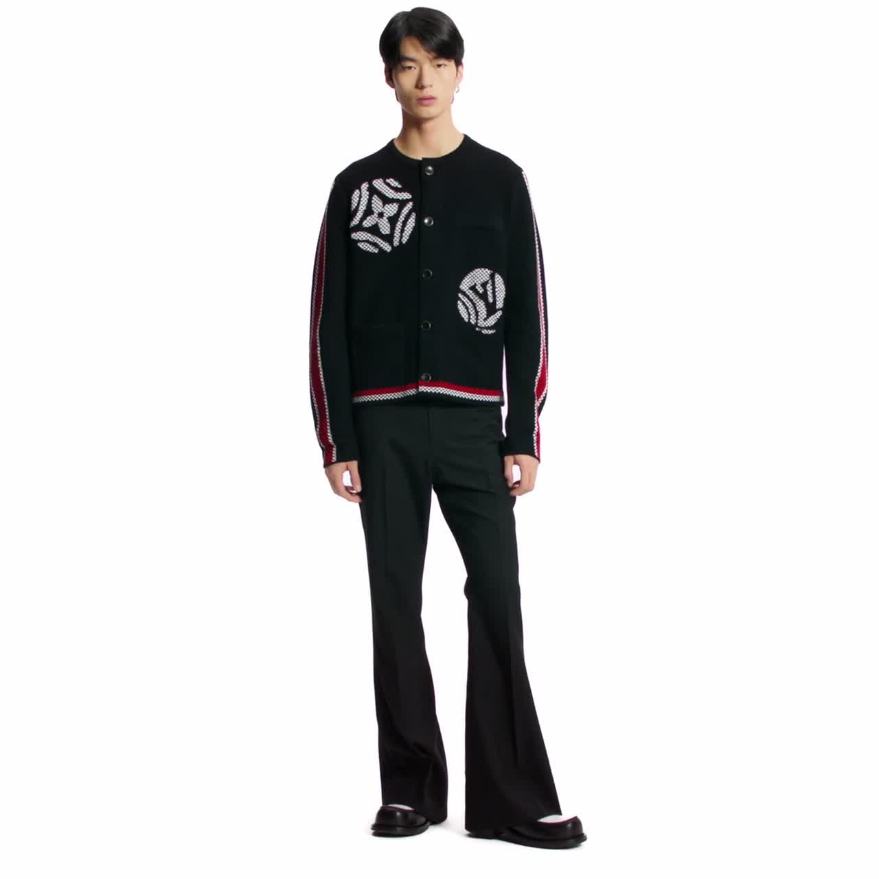 Der LV Bubble Loafer aus zweifarbigem Kalbsleder verfügt über Details, die auf das Erbe des Hauses Louis Vuitton verweisen: Der Riemen an der Vorderseite präsentiert sich in Gestalt eines Koffergriffs, während die mit gelben Nähten verzierte Schlaufe aus Naturleder an der Ferse auf die unverkennbaren Lederwaren verweist. Das stabile Design des Modells ist von der japanischen Workwear-Ästhetik der Herren Herbst Winter 2025 Fashion Show beeinflusst.