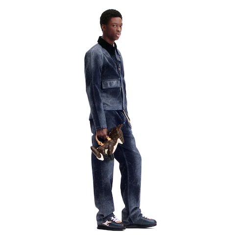Der LV Buttersoft Sneaker präsentiert sich in geschmeidigem Kalbsleder mit Denim-Effekt. Das vom Men's Creative Director Pharrell Williams entworfene Modell verweist auf die Sechzigerjahre, als Sneaker erstmals zum Mode-Statement wurden. Besonders hervorzuheben sind der außergewöhnlich weiche, gepolsterte Schaft und die raffinierten Details, darunter der ikonische Besatz aus Naturleder und eine dynamische LV Initials Signatur.