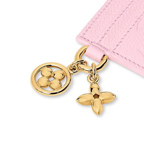 Diese Version des LV Charms Kartenetuis aus dem ikonischen Monogram Empreinte Leder des Hauses Louis Vuitton in Confetti Pink verleiht jeder Accessoire-Kollektion eine feminine Note. Das kompakte Design mit Anhängern in Form der Monogram-Blüte mit elegantem, goldfarbenem Finish verfügt über jeweils zwei Außenfächer auf jeder Seite sowie ein größeres Hauptfach in der Mitte und bietet somit ausreichend Platz für fünf Karten.