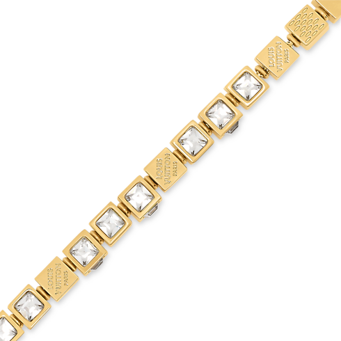 Dieses auffällige Armband bereichert die LV Cube Kollektion, inspiriert von einem Puzzle-Spiel namens Pateki, das 1932 von Gaston Vuitton erfunden wurde. Das außergewöhnliche Design präsentiert goldfarbene Metallwürfel, die an das ikonische Damier-Schachbrettmuster erinnern und durch glamouröse Strasssteine sowie eine Louis Vuitton Paris Signaturgravur veredelt werden. Ein verspielt-elegantes Armband und eine Hommage an das kreative Erbe des Hauses Louis Vuitton.