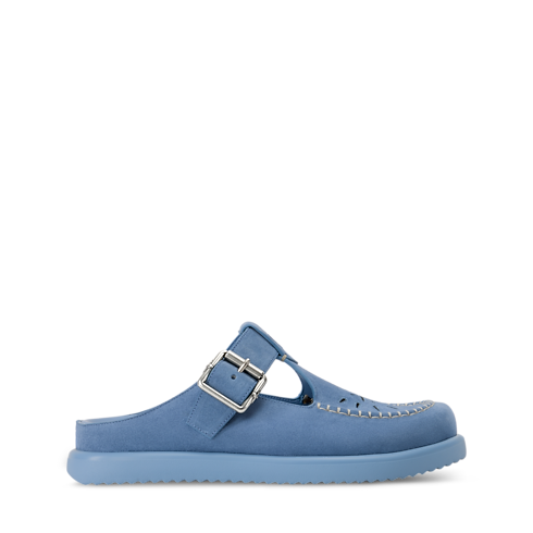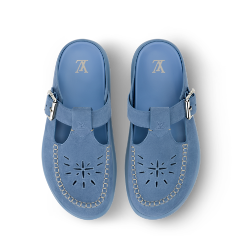 Die LV Easy Pantolette wird in dieser Saison aus exklusivem Kalbs-Veloursleder mit einem Mary-Jane-T-Riemen und einem verstellbaren Riemen samt Schließe neu interpretiert. Perforationen und aufgestickte Nähte auf dem Obermaterial verleihen dem Modell eine handwerkliche Note. Zu den Signaturen zählen LV Initialen auf dem T-Riemen und Monogram-Blüten auf der silberfarbenen Schließe. Eine leichte Außensohle aus Gummi rundet das Design ab.