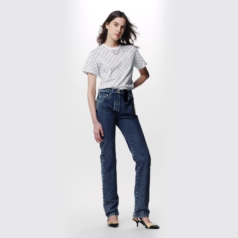 Dieses T-Shirt aus weichem Baumwolljersey ist Teil der LV Escale Summer Capsule-Kollektion. Die Innenseite ist mit dem ikonischen Monogram-Motiv bedruckt, wodurch eine leicht ausgeblichene Optik entsteht. Die schmeichelhaften, luftigen Flügelärmel und ein Ketten-Detail am Ausschnitt verleihen diesem modischen, legeren Modell eine elegante Note. Im Sommer ist es in jeder Garderobe unverzichtbar.