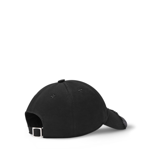 Die LV Flower Monogram Mütze in monochromen Nuancen ist eine ebenso stilvolle wie ausgefallene Neuinterpretation eines sportiven Klassikers. Mitten auf dem Mützenschirm ist das schwarze Gewebe aus Baumwolle ausgefranst, um einen bewussten Used-Look zu erzielen, bei dem das darunterliegende Monogram-Motiv sichtbar wird. Eine LV Flowers Signatur veredelt die Stoffbahnen auf der Vorderseite in der Mitte. Die LV Lovers Signatur ziert den Riemen auf der Rückseite.