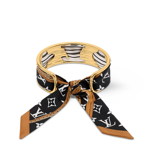 Das außergewöhnliche LV Initiales Armband aus Seide vereint den schimmernden Glanz von goldfarbenem Metall mit der Opulenz von edler Seide. Das kunstvoll gefertigte Modell zeigt sich mit den ikonischen Monogram-Blüten und LV Initialen des Hauses Louis Vuitton und wird von einem abnehmbaren Bandeau aus Seide durchzogen, welches mit dem Monogram-Motiv verziert ist. Ein unverkennbares Accessoire, das die Louis Vuitton Signatur auf einzigartige Weise präsentiert.