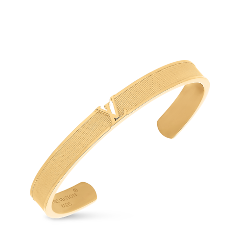 Das LV Initiales Armband aus glänzendem goldfarbenem Metall verleiht jedem Look eine ebenso zeitlose wie ikonische Eleganz. Das klobige Modell spiegelt die berühmten Initialen des Hauses Louis Vuitton wider, welche mit einer faszinierenden Aussparung versehen sind. Es lässt sich zu jedem Anlass angenehm tragen und setzt ein unverkennbares, stilvolles Statement.