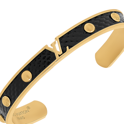 Das auffällige LV Initiales Armband kombiniert ein goldfarbenes Band aus Metall, welches mit edlem Karungleder bezogen ist, mit Nieten, die für eine ausgefallene Eleganz sorgen. Das Herzstück sind jedoch die berühmten Initialen des Hauses Louis Vuitton mit einer kunstgerechten Aussparung. Dieses modische und dennoch zeitlose Accessoire für jeden Tag setzt ein wahres Statement.