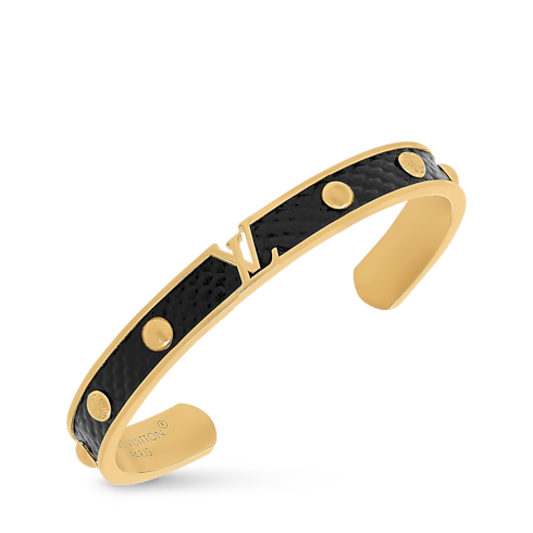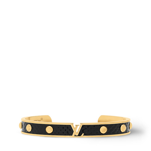 Das auffällige LV Initiales Armband kombiniert ein goldfarbenes Band aus Metall, welches mit edlem Karungleder bezogen ist, mit Nieten, die für eine ausgefallene Eleganz sorgen. Das Herzstück sind jedoch die berühmten Initialen des Hauses Louis Vuitton mit einer kunstgerechten Aussparung. Dieses modische und dennoch zeitlose Accessoire für jeden Tag setzt ein wahres Statement.