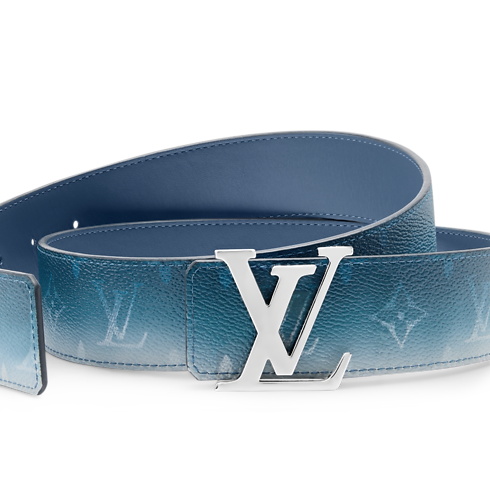 Der 40 mm breite LV Initiales Monogram Pigment Wendegürtel interpretiert dieses seit langer Zeit begehrte Accessoire in einem stilvollen, ausgeblichen wirkenden Design neu. Die silberfarbene Schließe hebt sich von dem Riemen aus blauem Leder elegant ab, dessen leuchtende Farbe eine Hommage an die dynamischen, für Indien charakteristischen Nuancen bildet. Auf der Seite mit dem Monogram-Motiv verblasst in einem auffälligen Effekt die Sättigung wie in einem Farbverlauf.